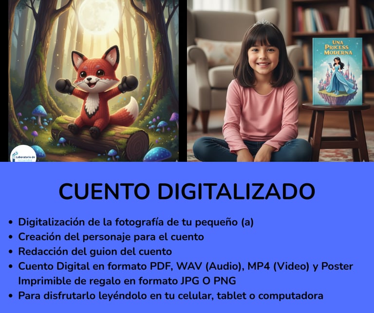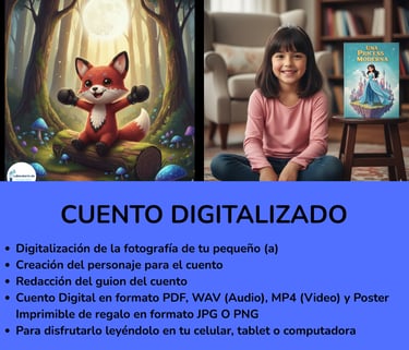 TE OFRECEMOS UN COMBO IRRESISTIBLE: Creamos tu Historia, y te la compartimos en formato digital (PDF), audiolibro (wav), Historia Narrada (MP4) y Te regalamos un Poster imprimible (JPG)